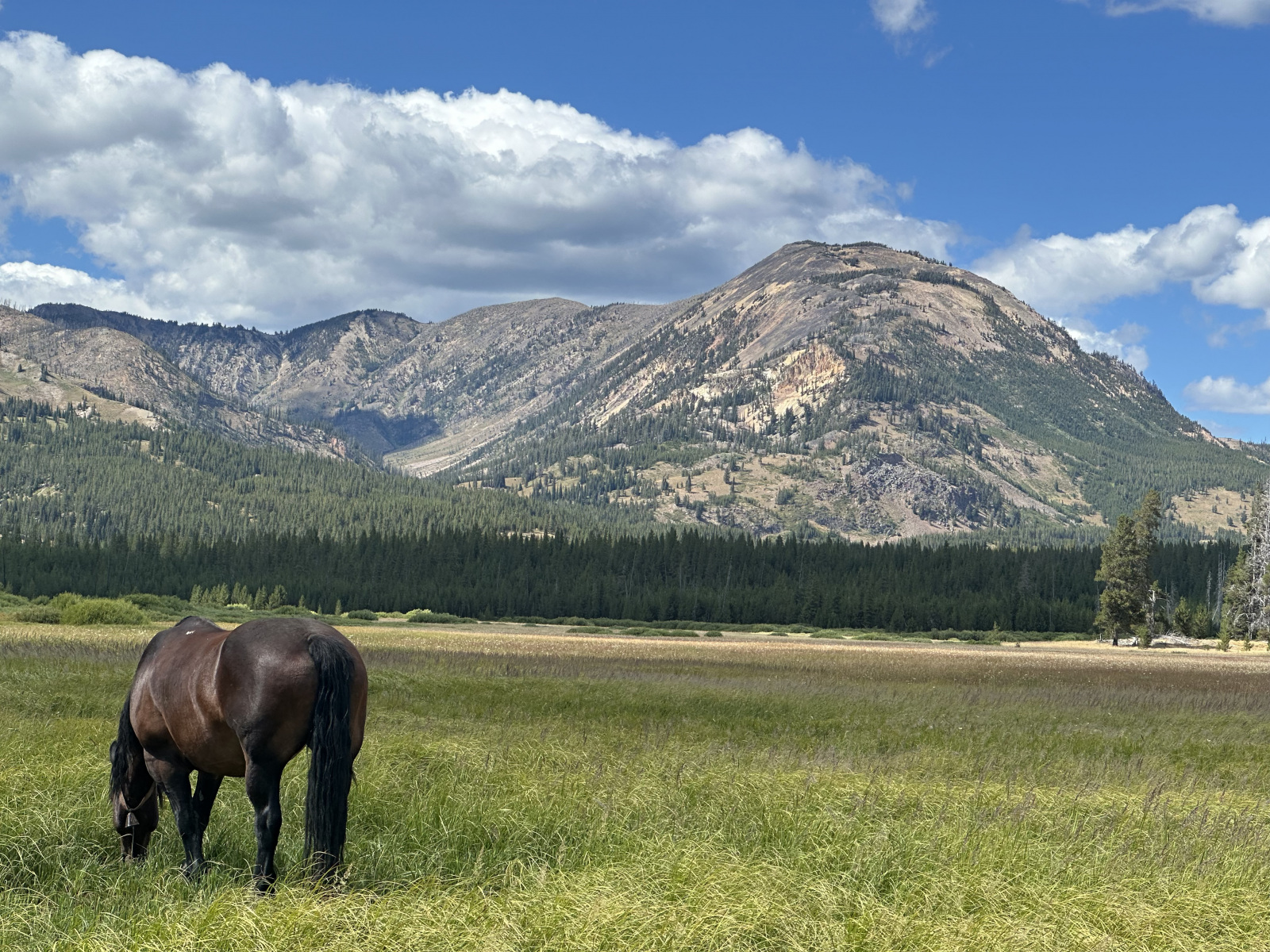 After disembarking from your new best friend, a gourmet dinner will be prepared by our talented camp chef and served against a stunning Yellowstone backdrop. Later in the evening, enjoy stretching out next to a crackling fire while sipping your favorite beverage, laughing with your family or close friends. Rockin' HK Outfitters is proud of our 25 years of packing experience in Yellowstone National Park. We strive to make every trip unforgettable with back country decadence and rigorous safety protocol. Our wranglers and crew are the best in the business and share the passion for being in the mountains with our equine companions.